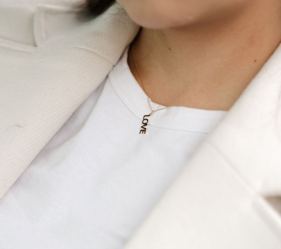 10K yellow gold "LOVE" pendant, a radiant expression of affection in elegant script.