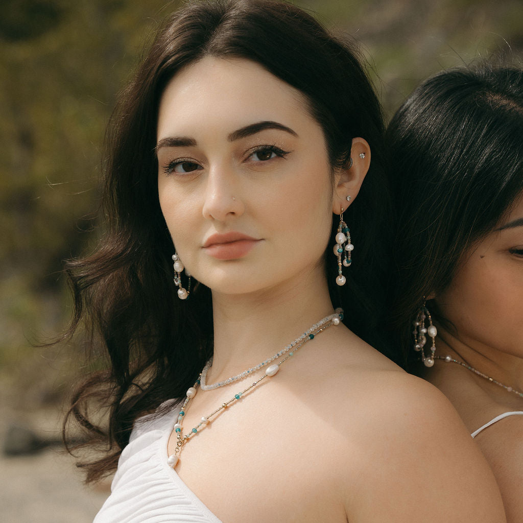 Each piece is uniquely handcrafted—subtle variations in stone and pearl shape add to its one-of-a-kind beauty.