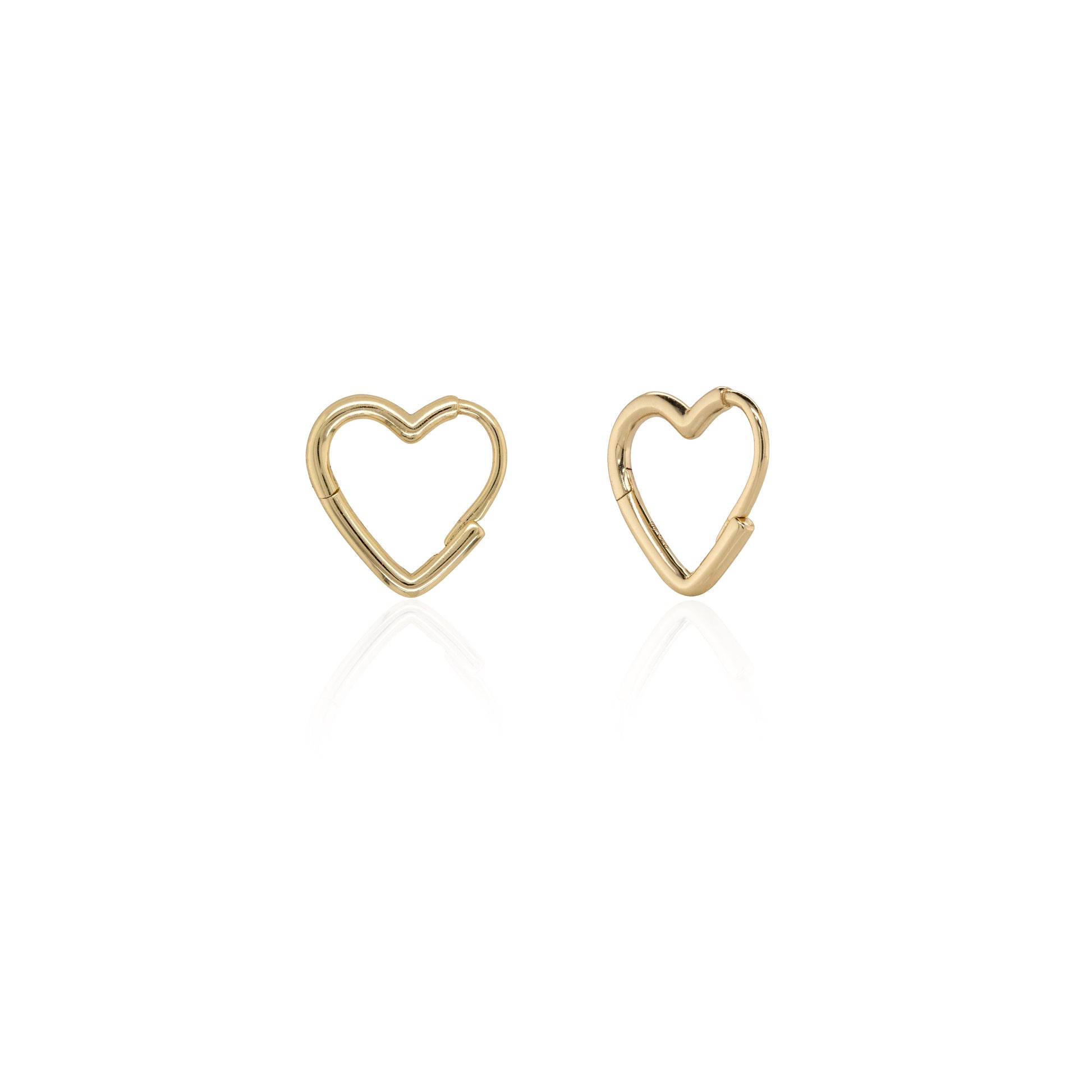 The Love Her Heart Huggies are crafted in Sterling Silver with rich gold vermeil. Just click and go. These hearts are perfect worn alone or layered!
